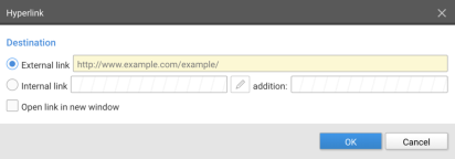 - When you choose to add an external link you need to enter the entire address, including https:// or http://